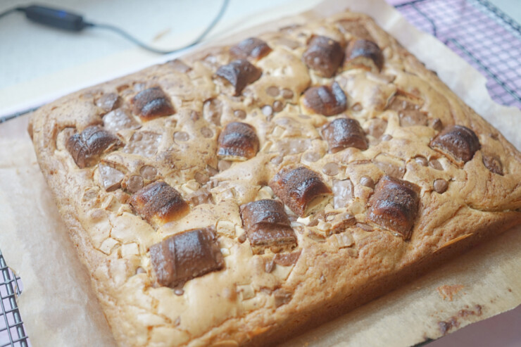 - Bake the Blondies in the oven for 25-30 minutes, or until there is a slight wobble in the middle. Leave to cool in the tin, or on a wire rack.