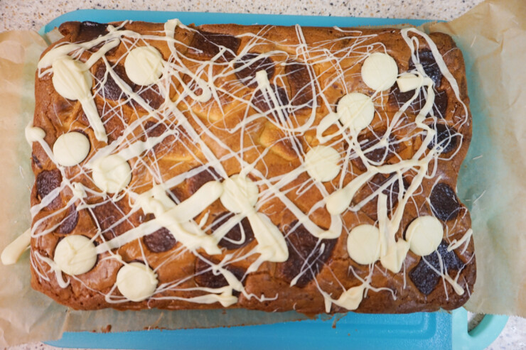 I added a white chocolate drizzle to the top as I wanted to add a little extra to these blondies. This is completely optional.