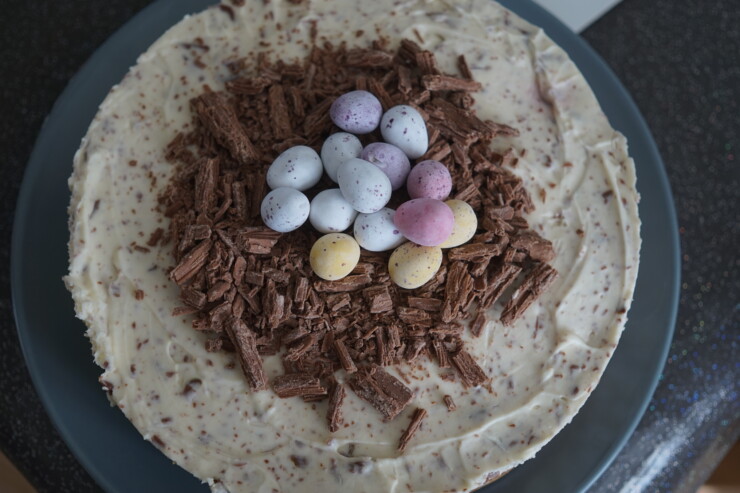 The combination of flake and mini egg just works so well in this cheesecake. I love how the top of this cheesecake looks just like a little nest which just adds this extra easter feeling to this cheesecake.