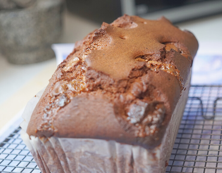 - Bake for 45–50 minutes, until a metal skewer inserted into the middle of the cake comes out clean. Leave to cool on a wire rack